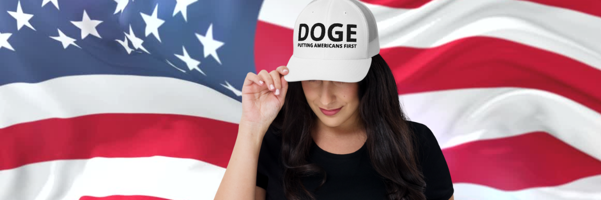 DOGE is putting Americans first again! Offering DOGE Trucker Hats with white...