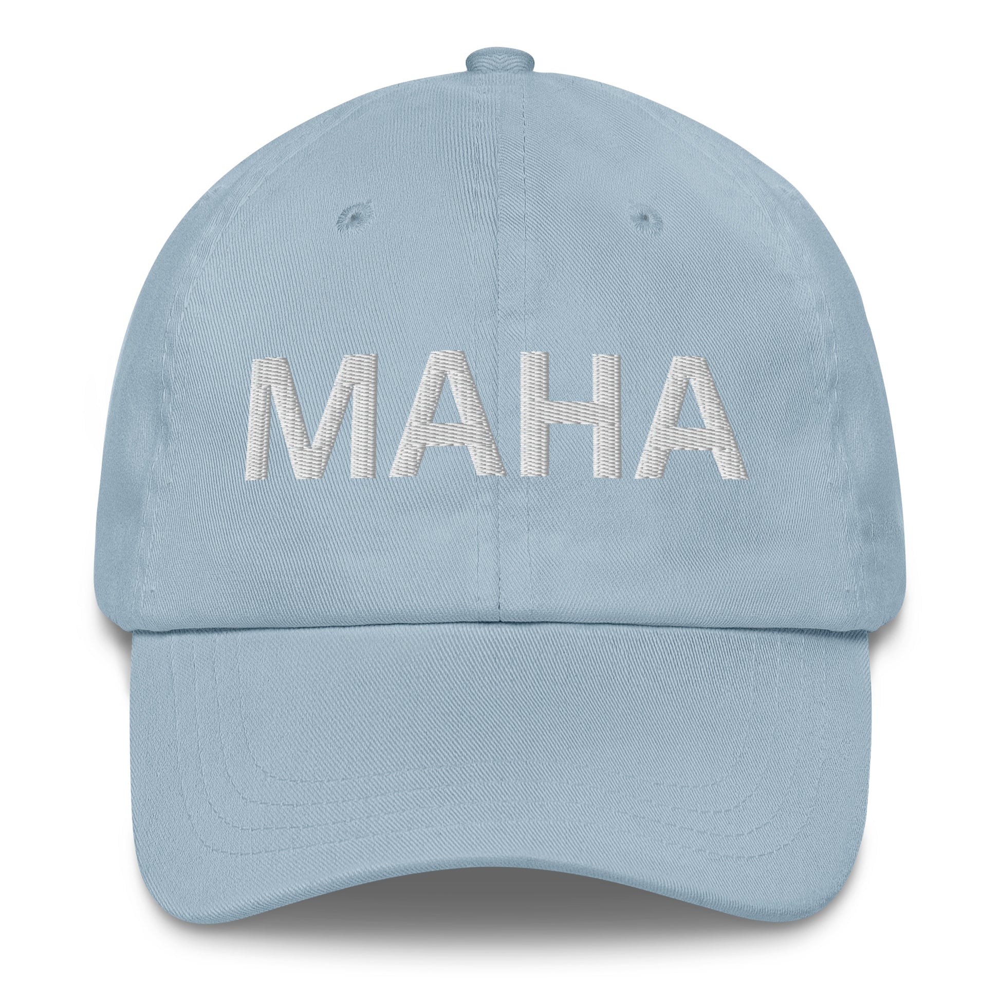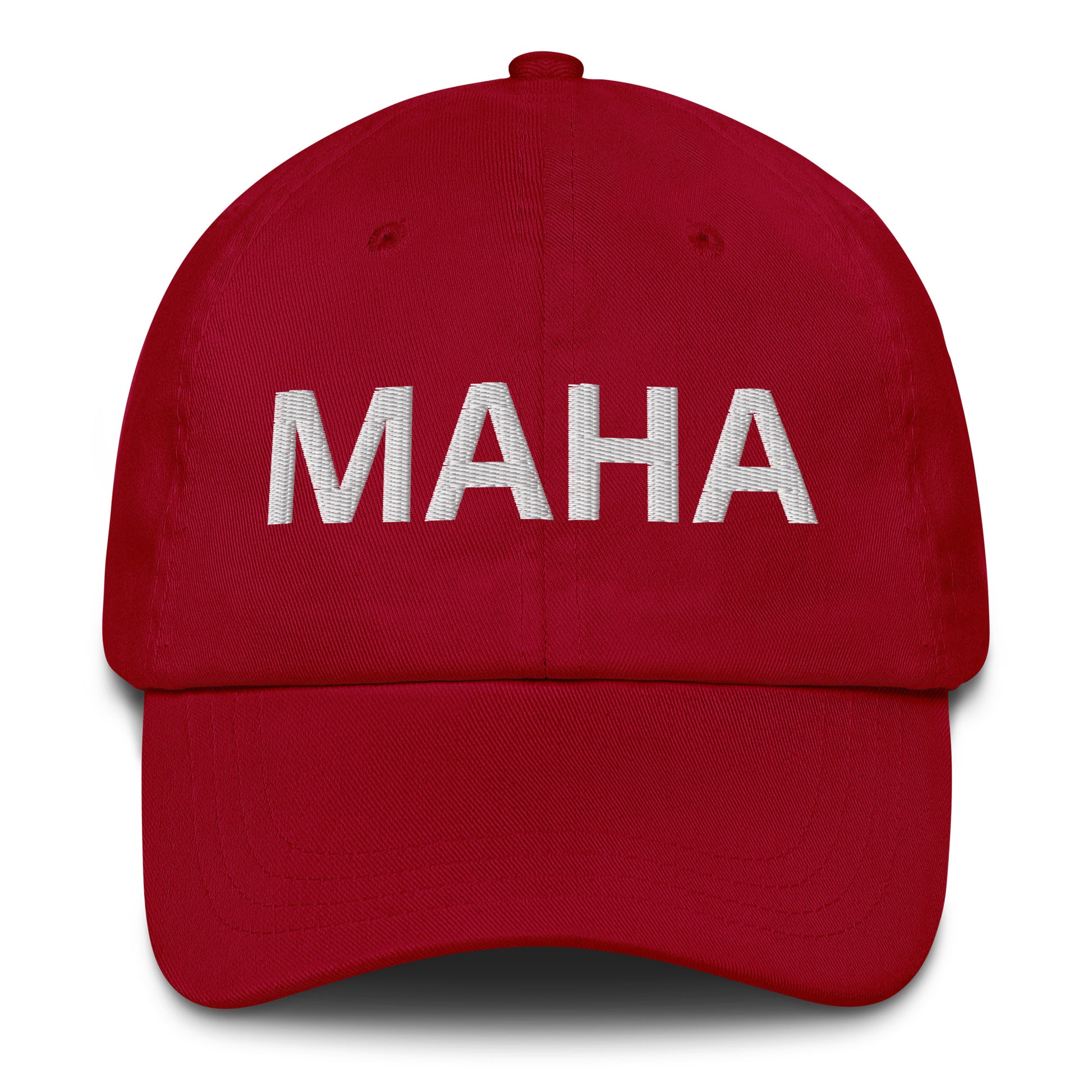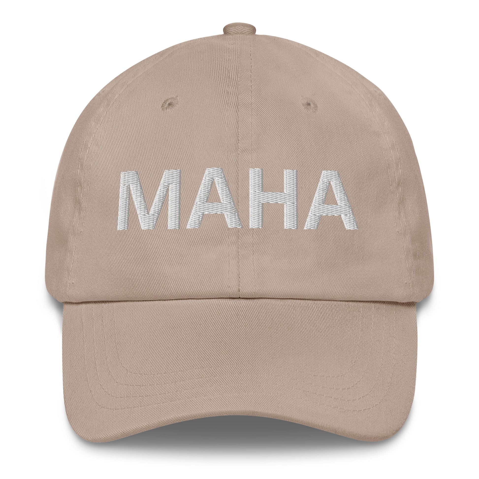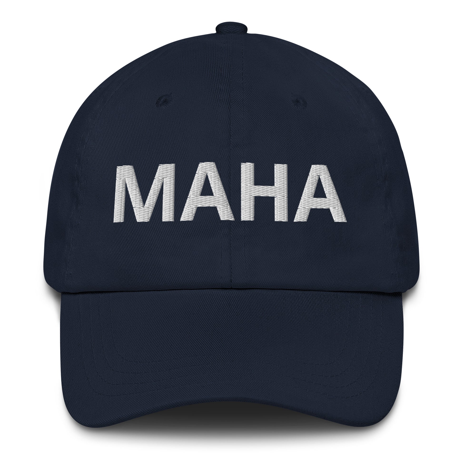 MAHA Soft Font- Make America Healthy Again hat has a low profile with an adjustable strap and curved visor.